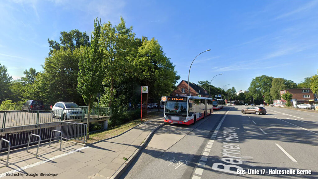 Von Barmbek geht es über Bramfeld, vorbei an der Siedlung Steilshop bis zur Endhaltestelle U-Bahn Berne, von wo auch die Busse in die andere Richtung eingesetzt werden.