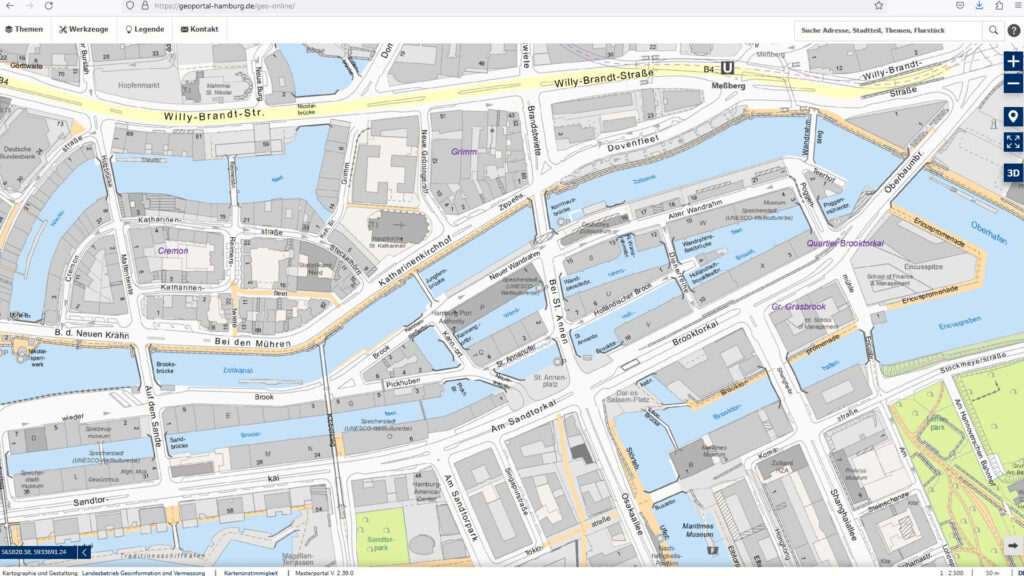 Dieses wird vom Landesbetrieb Geoinformation und Vermessung der Stadt Hamburg betrieben und stellt online eine große Anzahl von Vermessungsdaten zur Verfügung.